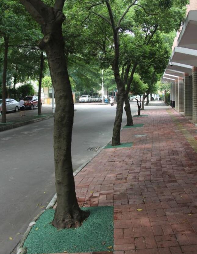 區(qū)園林綠化中心工作人員對(duì)此作出解釋,鋪上透水混凝土不會(huì)給樹(shù)木生長(zhǎng)帶來(lái)不良影響。它的特點(diǎn)是,透水性、透氣性強(qiáng),耐用性、承載力高、散熱性好,且比一般透水磚的使用年限更長(zhǎng)。“細(xì)石間空隙通風(fēng)透氣,另外也有利于防止水土流失。”她說(shuō)。相比舊有的透水磚,這種彩色混凝土間隙比透水磚小,垃圾也不會(huì)藏在泥土層,利于環(huán)衛(wèi)工人日常清掃。