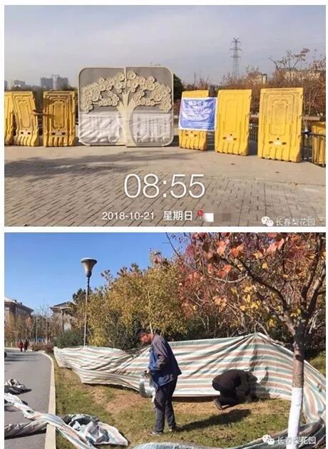 10月20日,原料進(jìn)場(chǎng),施工用膠(聚氨酯)及黑顆粒(橡膠)均符合國家環(huán)保標(biāo)準(zhǔn)。次日,塑膠跑道鋪裝工作正式開始。為保證跑道的整體質(zhì)量,施工現(xiàn)場(chǎng)不允許踩踏,這對(duì)于一個(gè)開放式公園頗有難度,施工方配合梨花園管理所在機(jī)器進(jìn)場(chǎng)后第一時(shí)間將梨花園大小共8處出入口全部用擋板封閉,園內(nèi)主要綠地用彩條布加以圍擋,在不同位置分別張貼施工公告。梨花園管理所錄制音頻利用園內(nèi)廣播循環(huán)播放,提醒游人封園期限、施工原因及內(nèi)容,方便園區(qū)管理的同時(shí),也得到了游客的理解和配合。