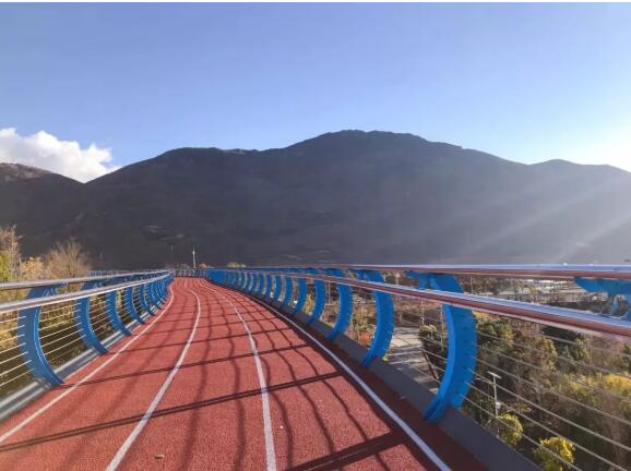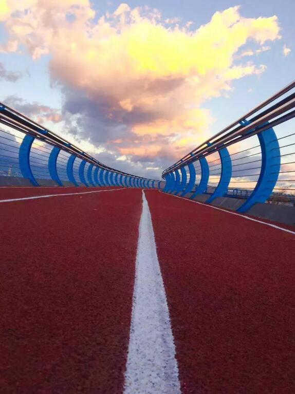 在懸空跑道堪比拍大片,光看圖就覺(jué)得養(yǎng)眼。順著鋼琴一樣的臺(tái)階爬上坡,就能看到這條特別的跑道,全場(chǎng)1400米,全部用塑膠鋪成。