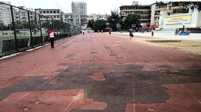 赤坎區(qū)運動場之前破損的跑道塑膠。