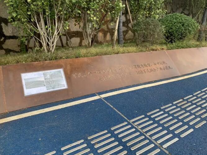 一頭連著秀峰山公園,一頭連著湘江,全長1公里的秀峰大道是長沙成北一條重要的東西向城市主干道,周邊小區(qū)、學(xué)校、開發(fā)區(qū)林立。在此次改造過程中,結(jié)合“一圈兩場三道”建設(shè),該道路還被建設(shè)成了一條文化步道。記者現(xiàn)場看到,人行道內(nèi)每隔10余米便設(shè)有一個“海綿城市”科普展覽板,結(jié)合現(xiàn)場對 “海綿城市”進行詳細(xì)介紹;同時通過年份字雕塑及景觀小品等,展示出金霞開發(fā)區(qū)產(chǎn)業(yè)文化。