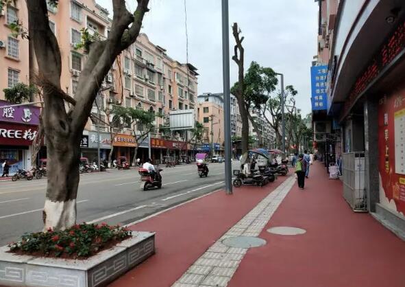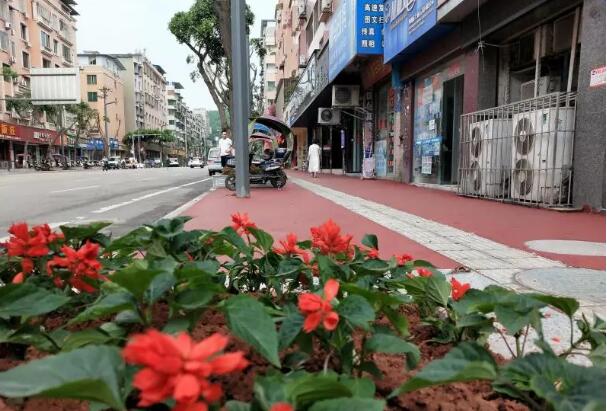 4月28日,記者來到建設(shè)路一段大富豪至九龍?zhí)焯荻慰吹?,街道兩旁棗紅色的人行道舒適平坦,灰白色的大理石樹池里新栽植的一串紅在初夏的晨光里搖曳生姿,改造后的人行道煥然一新,市民行走在嶄新的道路上舒適愜意。