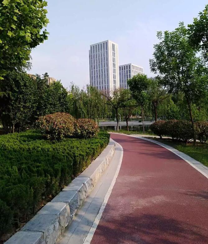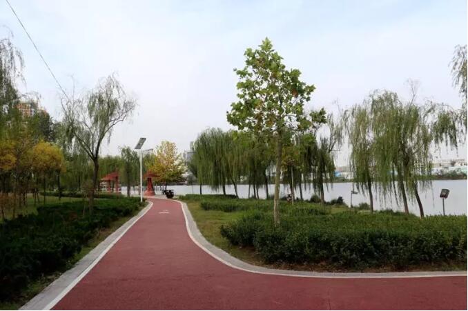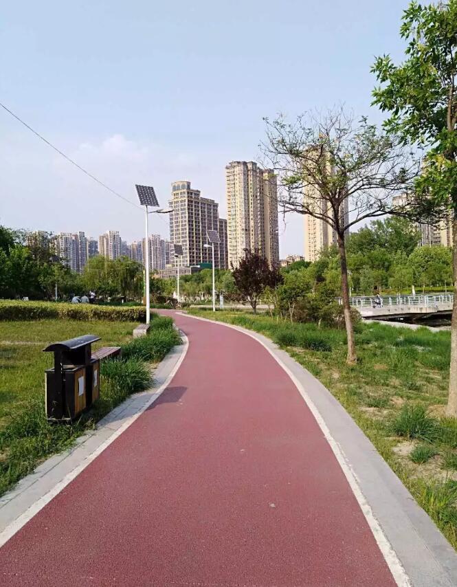 趙王河城市綠道是我市第一條標(biāo)準(zhǔn)化綠道,該綠道投資2400萬元,由東華大學(xué)設(shè)計(jì)研究院和上海園林綠化建設(shè)有限公司聯(lián)合設(shè)計(jì),沿趙王河?xùn)|西兩側(cè)建設(shè),南起長江路,北至長城路,全長23公里,整個(gè)路面采用紅綠相間的彩色透水混凝土鋪裝,與趙王河沿線景觀形成有機(jī)串聯(lián),為市民群眾打造了一處“親近自然、綠色健康、運(yùn)動(dòng)時(shí)尚”的開放式環(huán)形綠色生態(tài)廊道。