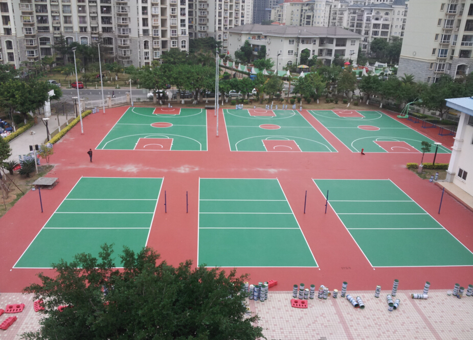 d、最后就是等面層徹底干透后檢查表面的平整度,有不平的需要企業(yè)及時(shí)通過調(diào)整,最后結(jié)果就是涂面漆,一般情況選用的硅PU面漆具有中國顏色鮮艷、豐富、抗輻射,最后能夠按照相關(guān)標(biāo)準(zhǔn)設(shè)計(jì)要求自己進(jìn)行分析場地劃線.