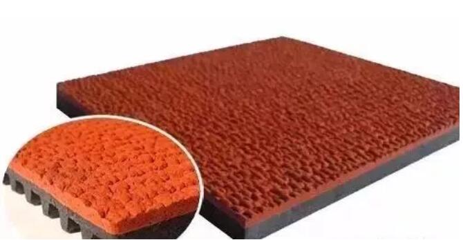 透氣型塑膠跑道選用世界田聯(lián)認可的復(fù)合布局,契合世界比賽規(guī)范,規(guī)范厚度為13mm。上層采用PU顆?;駿PDM耐候性環(huán)保彩色顆粒,用滲水的聚氨酯密封,基層選用機械施工緩沖底墊(10mm)。