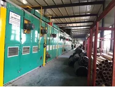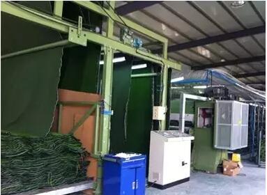 沒(méi)錯(cuò),就是這些織布機(jī)一樣的家伙,將一個(gè)個(gè)沙頭穿好,然后織好,那么最后一幅圖上的設(shè)備是做什么用的呢?長(zhǎng)見(jiàn)識(shí)的機(jī)會(huì)來(lái)了,這叫做烘干機(jī),草坪織好后,背面要涂背膠,背膠涂好后,需要烘干。