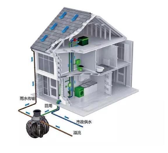 屋頂結構頂板荷載不能滿足綠色屋頂結構和植物荷載,其坡度較大,綠色屋頂結構容易滑落,抗風性較低,不能實施綠色屋頂。雨洪期間雨水排放至建筑周邊,增加內(nèi)澇風險,雨水浸泡危害建筑地基。坡屋頂長期受到雨水沖刷,屋檐、屋脊結構損壞,加劇建筑老化??梢栽黾游蓍芘潘邸⒂晁?、雨水桶等結構,組成坡屋頂雨水收集系統(tǒng)。