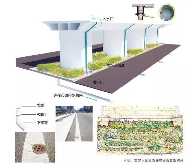 采用入水口初期棄流、入水口攔截裝置、高架下滯留池設計等方式。