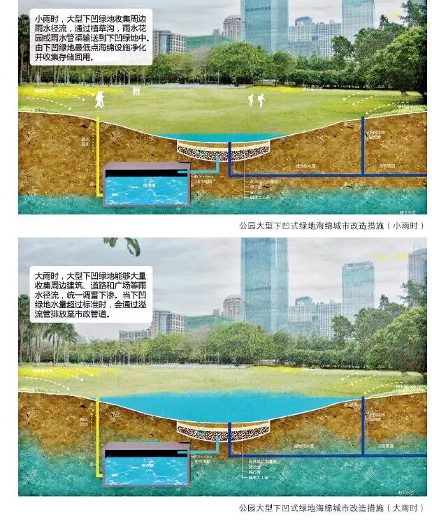 海綿城市,指城市能夠像海綿一樣,在適應環(huán)境變化和應對自然災害等方面具有良好的“彈性”,下雨時吸水、蓄水、滲水、凈水,需要時將蓄存的水“釋放”并加以利用。海綿城市建設遵循生態(tài)優(yōu)先等原則,將自然途徑與人工措施相結合,在確保城市排水防澇安全的前提下,最大限度地實現(xiàn)雨水在城市區(qū)域的積存、滲透和凈化,促進雨水資源的利用和生態(tài)環(huán)境保護。