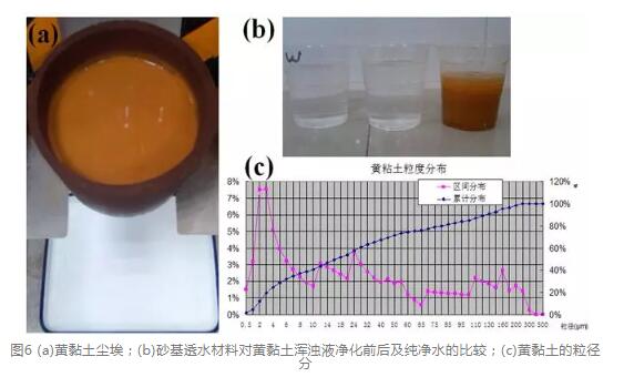 為了檢測(cè)砂基透水材料對(duì)污水的凈化作用及過濾孔徑大小。通過對(duì)不同固含量,不同物質(zhì)、不同粒徑粉體過濾前后的粒度分布測(cè)量,判定材料過濾孔徑的大小。如圖6,試驗(yàn)中實(shí)現(xiàn)1.0 μm以內(nèi)的過濾,接近于凈水器的標(biāo)準(zhǔn)。