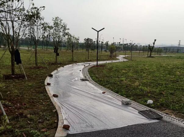 (3)在太陽爆曬、空曠及風(fēng)大等情況下,透水混凝土在終凝前因為表面嚴(yán)重失水而收縮開裂,同時應(yīng)提早覆蓋塑料薄膜養(yǎng)護,及時噴霧補充表面透水混凝土水分,防止透水混凝土內(nèi)水分繼續(xù)散失而開裂。