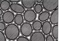 圖3所示為透水混凝土的內(nèi)部孔結(jié)構(gòu)模型。由圖可知,骨料間的交接點(diǎn)在透水混凝土受力時(shí)傳遞力的作用,粗骨料界面間的水泥漿體膠結(jié)面相對(duì)較小,且水泥膠結(jié)層很薄,該區(qū)域成為透水混凝土的力學(xué)性能裂化區(qū),所以保證透水混凝土的孔隙率,提高膠結(jié)層強(qiáng)度、增加交接點(diǎn)的面積成為提高透水性混凝土強(qiáng)度及抗凍耐久性的關(guān)鍵[1,20]。