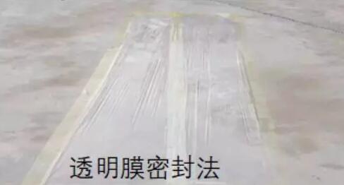 晴天時(shí)以透明薄膜平鋪于地面,并以膠帶封合薄膜四周,經(jīng)2―4小時(shí)后,若薄膜內(nèi)部呈現(xiàn)結(jié)霧現(xiàn)象,則地面含水率過(guò)高,不宜施工。(常用)
