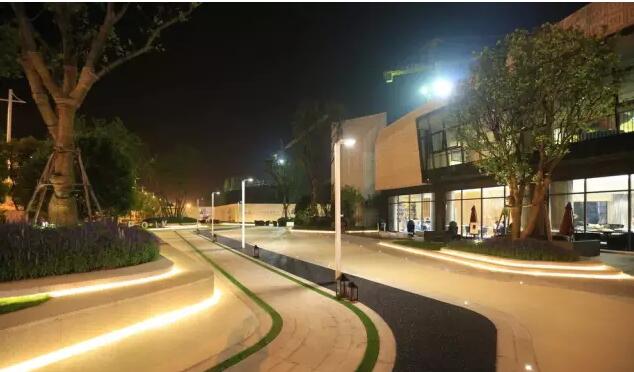 燈光設(shè)計也是本項(xiàng)目重點(diǎn)設(shè)計之一。地面的點(diǎn)式地?zé)?、花池邊隱藏的燈帶、高桿庭院燈等燈光的設(shè)計統(tǒng)一協(xié)調(diào),點(diǎn)、線、面以及光色的搭配,使得遠(yuǎn)處的自然風(fēng)光與燈光景觀相得益彰。