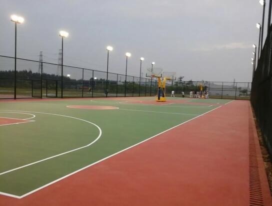 第五步:刮彈性層:硅PU彈性層開桶后,加入約一紙杯水(150-300g)攪拌均勻,用稀釋劑調(diào)整材料的稀稠度,用專用工具均勻刮涂在場地上,第一遍固化后再施工第二遍或第三遍,每遍施工最好不超過2MM,同時須在第一遍施工完成后須找平場地積水。