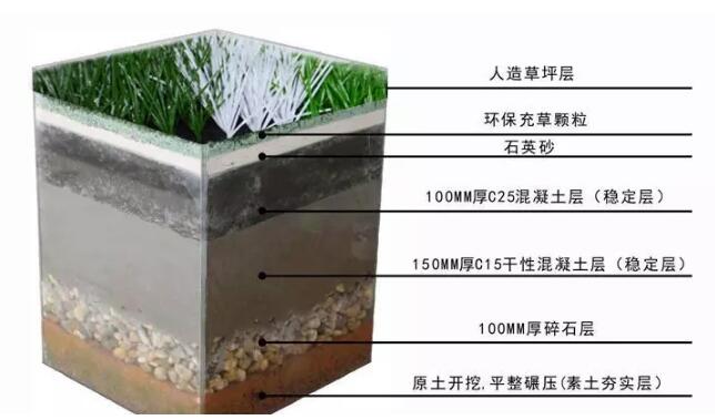 人造草坪的輔料填充深度這是取決于草坪的高度和場地需要的性能,一般足球場草坪高度都是40-60mm,也就是說底部到葉尖高度為40-60mm左右,按照FIFA標準的話,足球場50mm草高需要填充輔料的高度為3/4,也就是35mm,這樣符合場地對足球的彈性和表面的硬度。如果是中小學校的運動場地的話,可以適當增加輔料,甚至可以跟草絲持平。所以并不是所有的場地的填充輔料的深度都一樣的,是根據(jù)不同的場地,和草絲高度來填充。