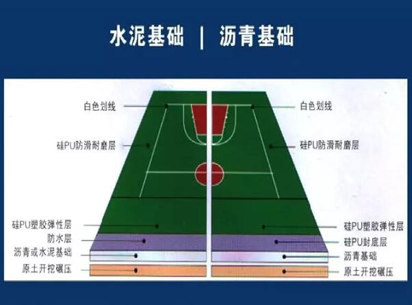 硅PU球場(chǎng):適用于籃球、羽毛球、乒乓球、排球、室內(nèi)足球、手球、幼兒園、健身房、醫(yī)院、賓館等室內(nèi)外場(chǎng)地,可直接在水泥混凝土上鋪設(shè),一般能使用8年以上。