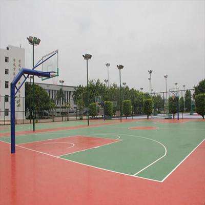 彈性丙烯酸籃球場:由100%的丙烯酸類材料和特制的聚合橡膠顆粒組成,具有良好的韌性,并可以遮蓋因基礎(chǔ)產(chǎn)生的細(xì)小裂縫;一年四季都能保持良好效果。具有極佳的減震性能,減輕打球者腳部和腿部受到的震蕩(尤其是和非專業(yè)選手及休閑娛樂);消除因設(shè)施產(chǎn)生的疲勞,提高運動樂趣。