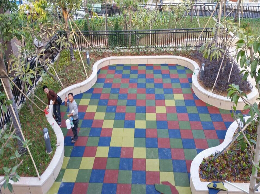 采用原色橡膠顆粒,顏色鮮艷,色彩豐富可組成各種卡通圖案,不易褪色。其透心特質(zhì),即表面磨損仍光滑如新。因整體鋪設(shè),故不存在裂縫問題。其下面吸震層可根據(jù)地面狀況作適當(dāng)調(diào)整,使其表面平整。