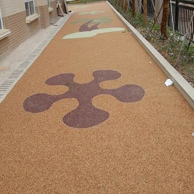 具體操作:按照嚴格標(biāo)準(zhǔn)的比例將雙組份樹脂膠均勻攪拌預(yù)熟化10-20分鐘,然后按比例將天然石子和膠結(jié)劑攪拌均勻,最后攤鋪在需要使用的地面上,攤鋪完及時使用涂有脫模機的工具壓平抹光,直至整個面層均勻平整。