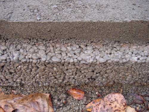 素色透水混凝土一般分1-3層施工,三層結(jié)構(gòu)為底層碎石墊層+粗石素色透水面層+細(xì)石素色透水面層,兩層結(jié)構(gòu)為底層碎石墊層+粗石透水面層,土基較好的可以直接單層鋪設(shè)粗石透水混凝土。相比彩色透水混凝土的結(jié)構(gòu)不僅節(jié)約了材料的成本,也節(jié)約了施工的成本。