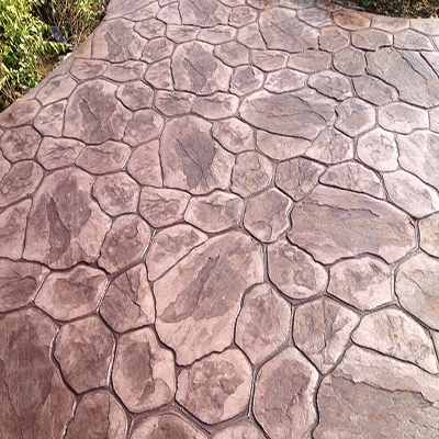 仿石壓模地坪是在新鋪裝的水泥混凝土的基面上找平后(未完全凝固前)使用模具壓印形成各種形狀的紋路,再經(jīng)過表面抹光與噴涂處理等施工工藝,使水泥混凝土表面形成仿真度極高的石材紋理和立體效果。如:大理石、花崗石、自然石等效果。仿石壓模主要材料:混凝土強(qiáng)化料,脫膜粉,保護(hù)劑,顏料等。