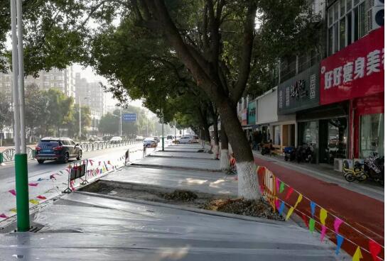 小編在現(xiàn)場看到,改造工程將原來的非機(jī)動車道及側(cè)分帶拆除,改成斜向停車位,這樣的設(shè)計既美觀又便于車輛出入。