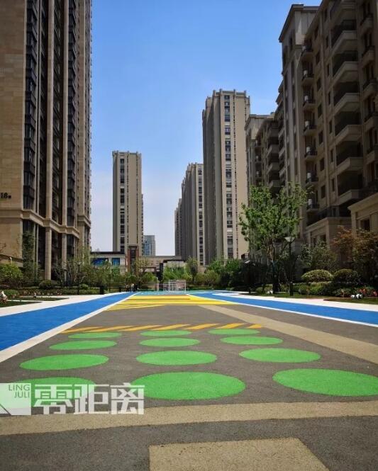 5月5日,記者來(lái)到無(wú)錫市這家名為融創(chuàng)璦頤灣名邸小區(qū),在小區(qū)的圍墻外就能聞到刺鼻的異味,進(jìn)入小區(qū)內(nèi)部,異味更為嚴(yán)重,一些業(yè)主只得戴著口罩或者手捂口鼻在小區(qū)內(nèi)行走。在整個(gè)小區(qū)里,塑膠跑道的面積在3000平方米左右。